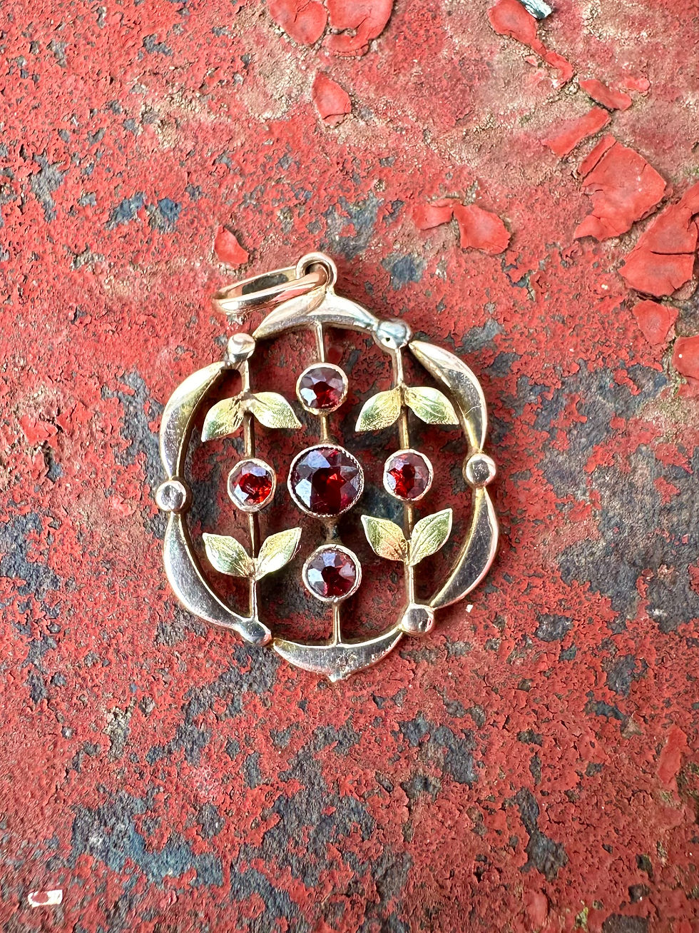 Edwardian 9ct Gold Garnet Floral Pendant