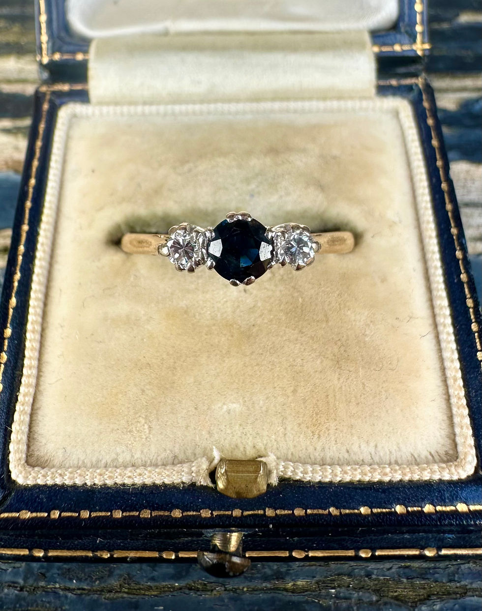 Vintage 18ct Gold Sapphire & Diamond Trilogy Ring